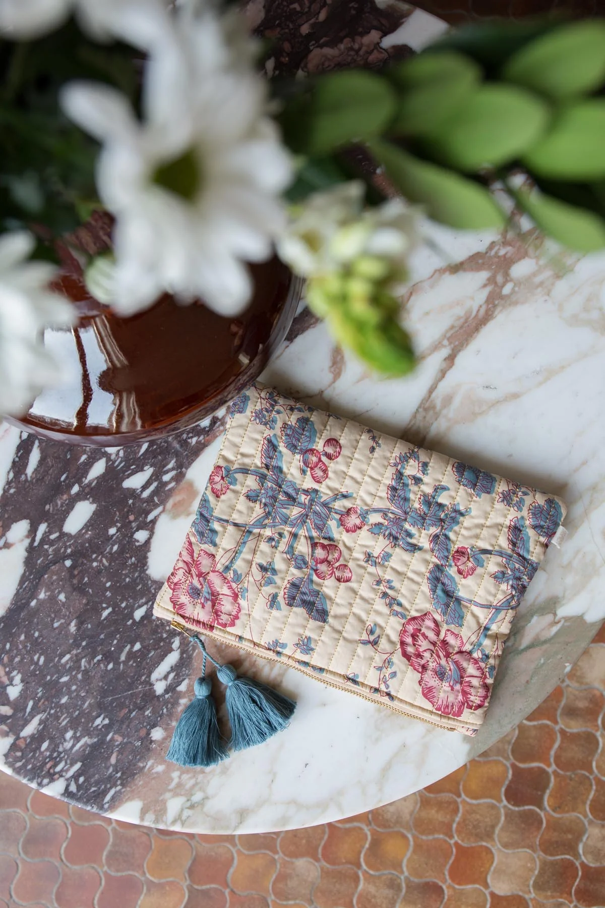Accessoire pratique et bohème, cette pochette matelassée et pomponnée est indispensable au quotidien. On y glisse ses petites affaires, on s'en sert comme d'un grand portefeuille, bref elle ne nous quitte jamais. À offrir ou à s’offrir !